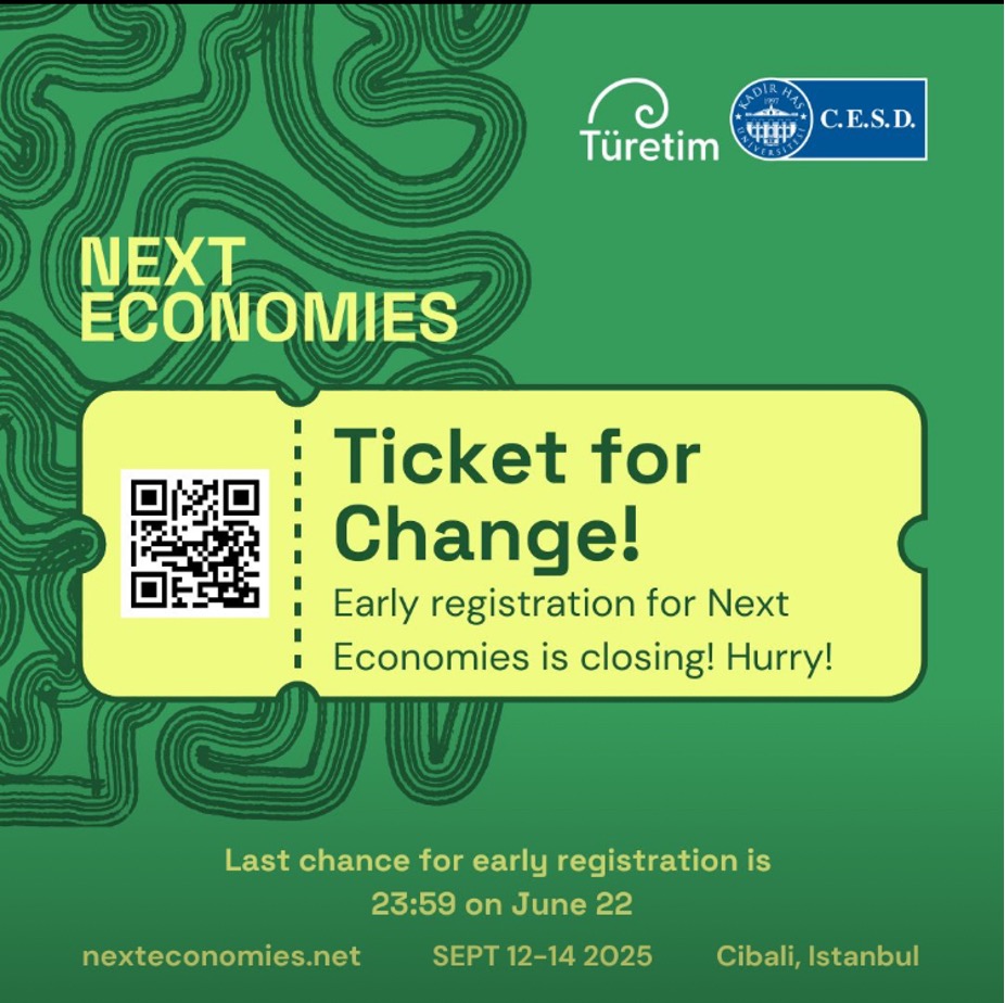 Next Economies Summit 2025 için erken kayıt süresi 22 Haziran 2025’e kadar uzatıldı. Bu önemli buluşma, ekonomik ve toplumsal dönüşüm süreçlerine katkı sunmak isteyen herkes için güçlü bir buluşma alanı sunuyor. Detaylı bilgi ve kayıt için: nexteconomies.net
